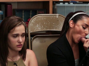 Dua pria memompa pirang Sadie Leigh di meja pegadaian. Dua pria memompa mulut dan vagina Sadie Leigh bersama di meja toko pegadaian