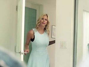 Setelah dengan penuh semangat mencium tetangganya yang lebih tidak berpengalaman, wanita berambut pirang yang penuh nafsu berhubungan seks dengannya dan menikmatinya