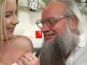 Kakek mirip Santa bercinta dengan gadis pirang panas yang imut