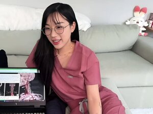 Si kutu buku berambut coklat dengan kacamata, Sofia Lee menghisap batang seperti seorang profesional, tanpa biaya